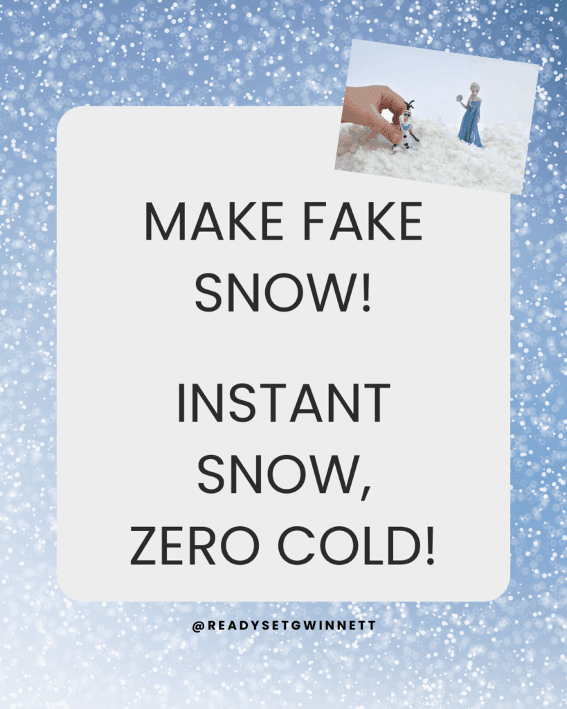 Note: An adult should supervise children while playing with the pretend snow. Small children may be tempted to put the snow in their mouths or rub their eyes.