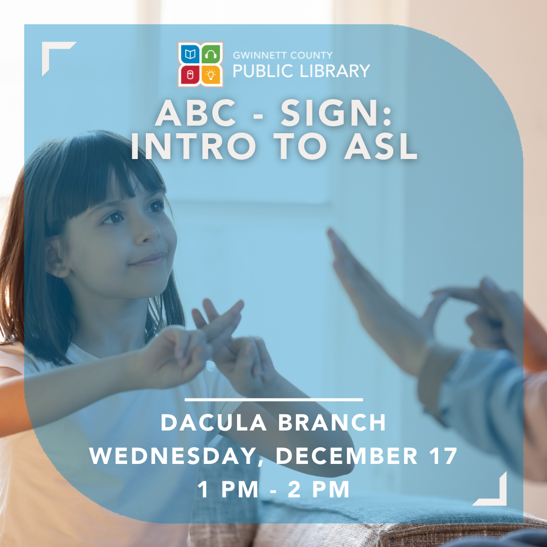 ABC-Sign: Intro to ASL will be an introduction into american sign language. Participants will be shown the alphabet, signs for numbers 0-9, and a few greeting phrases. Participants will also be introduced to Mango Languages and shown how they can use the website and app to learn ASL and other languages”