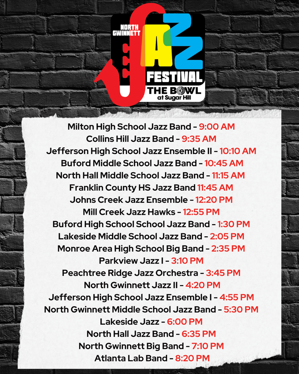 “Hosted by the North Gwinnett High School Jazz Program in coordination with the City of Sugar Hill,
