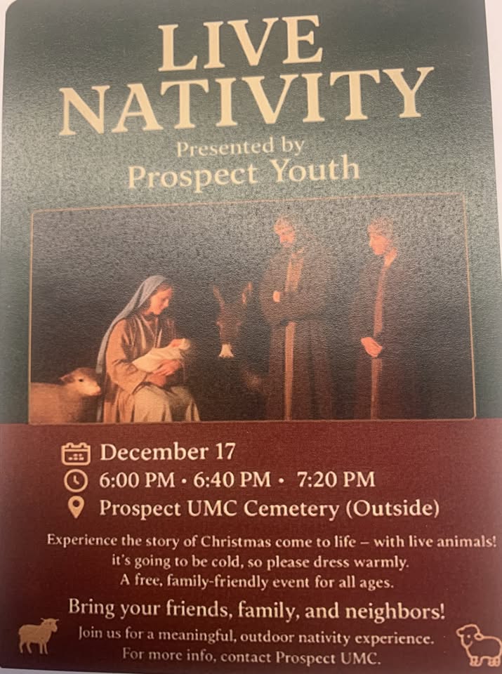 Join us Wednesday December 17 for our Live Nativity. We will have three showings 6pm, 6:40pm and 7:20pm
