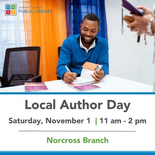 On Saturday, November 1, 2025, from 11 a.m. to 2 p.m., the Norcross Branch will host this free event, bringing together a diverse group of writers from our community. Whether you’re a reader, aspiring author, or simply curious, it’s a chance to explore new voices, purchase signed books, and connect with storytellers who call Gwinnett home.