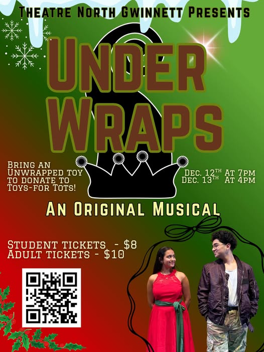 Come see UNDER WRAPS!! You don’t want to miss our ORIGINAL CHRISTMAS MUSICAL next weekend. There will be two shows: Friday, Dec 12th at 7pm AND Saturday, Dec 13th at 4pm! We hope to see you there! 🎭🎄🎁