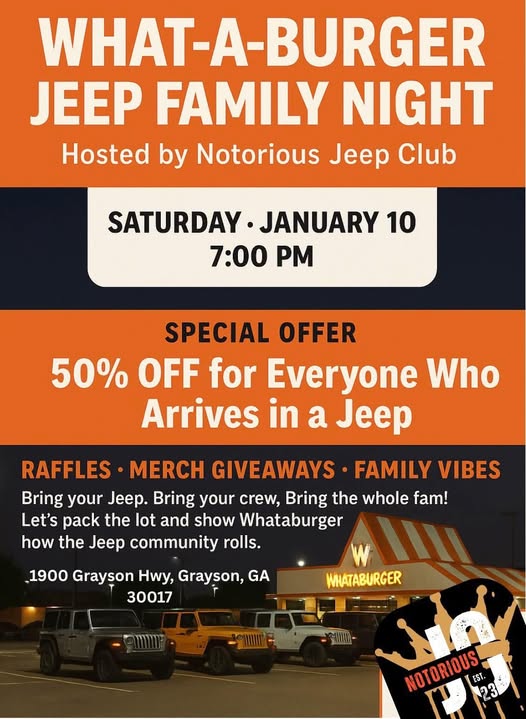 We’re kicking off 2025 with a Whataburger Jeep Family Night and you already KNOW it’s gonna be a whole vibe! πŸ§‘πŸ”πŸ§‘