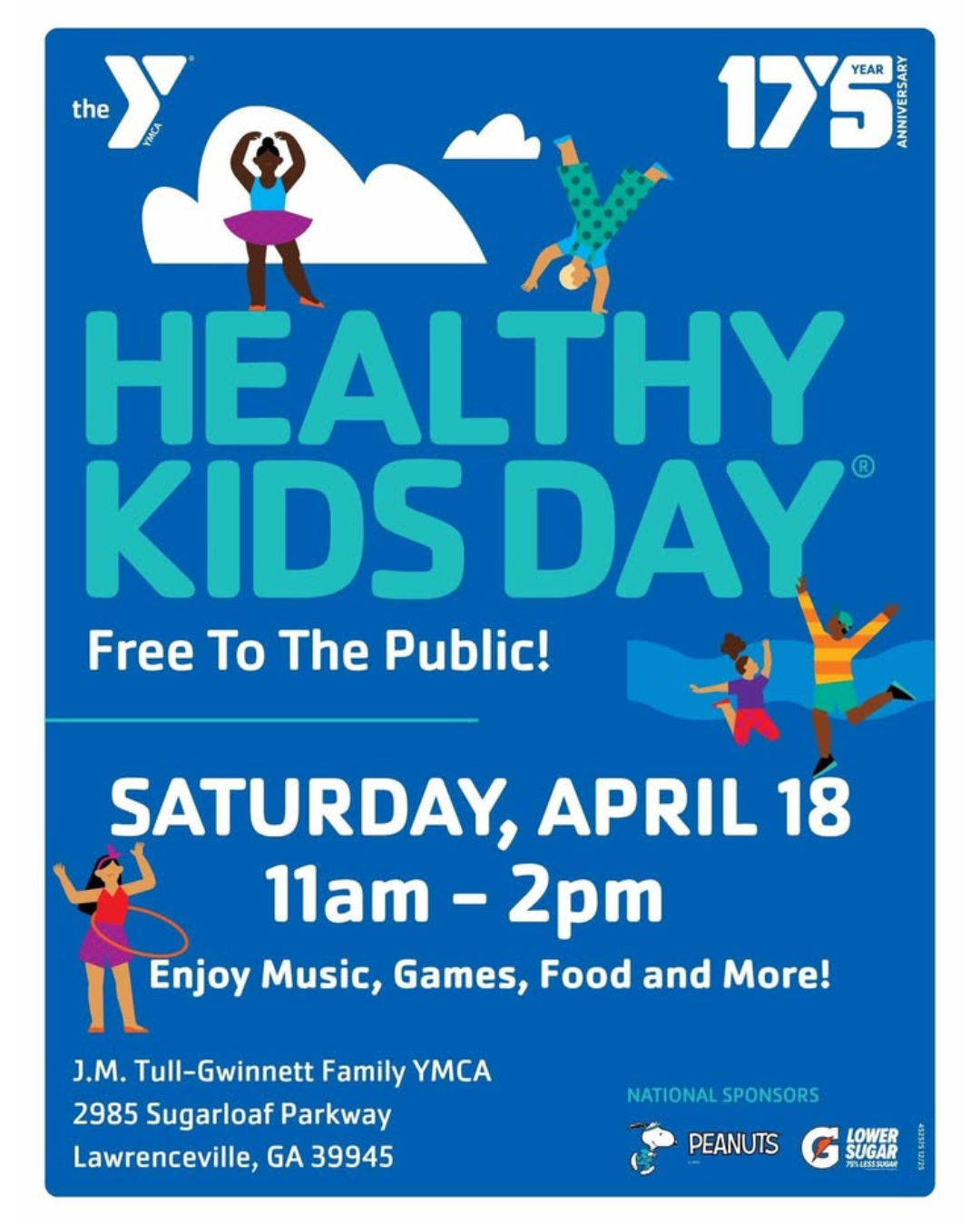 The J.M. Tull-Gwinnett Family YMCA is hosting Healthy Kids Day on Saturday, April 18 from 11am to 2pm, and it is FREE and open to the public!